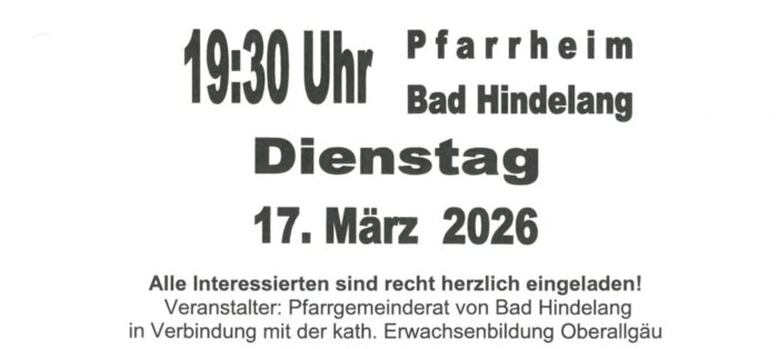 Der Pfarrgemeinderat Bad Hindelang lud am Dienstag, 7.11.23 um 19.00 Uhr zum Vortrag „Eine Dusche für die Seele – Das... Weiterlesen