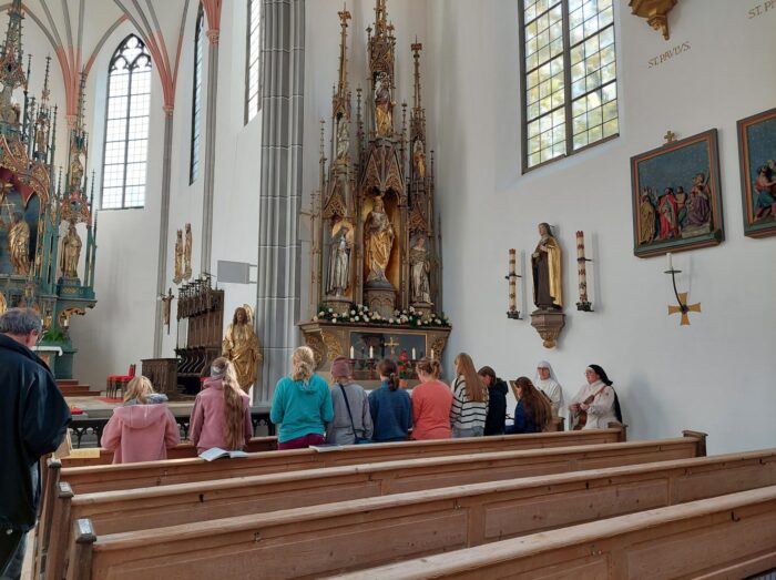 Extra aus dem Kloster Wettenhausen kamen zwei Klosterschwestern angereist um mit den letztjährigen Firmlingen Rosenkränze zu knüpfen.